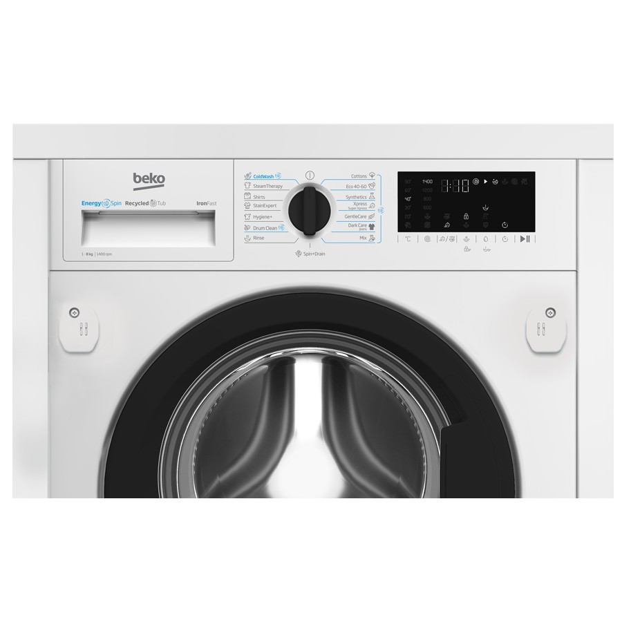 Meet the BEKO B3WBT681415W built-in washing machine — a sleek, efficient powerhouse built for modern homes. With an 8 kg capacity and up to 1,400 rpm spin speed, it handles large loads fast without compromising performance. Its ProSmart Inverter motor brings quiet, durable operation, while features like SteamCure, StainExpert, and AquaWave technologies deliver deep cleaning and fabric care. With 15 programs, 47 L water use per cycle, and Energy Class A efficiency, it’s designed for high performance, low consumption, and smart convenience.