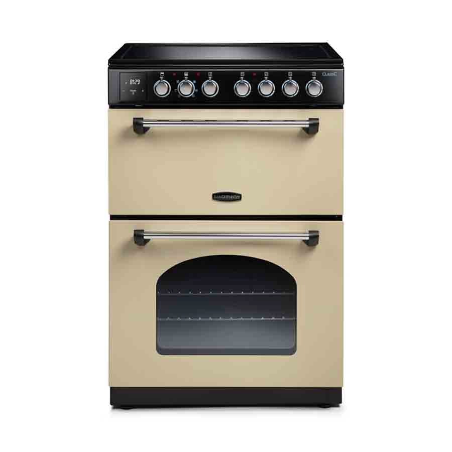 Featuring a stylish cream finish accented with chrome, the Rangemaster CLA60ECCR/C Classic 60 cm Ceramic Cooker delivers a blend of timeless elegance and practical performance. It offers a spacious 69 L multifunction main oven and a 39 L top oven with grill, both equipped with LED timer and seven cooking functions including a slow-cook option-for versatile meal preparation